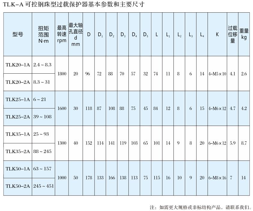 TLK-A可控鋼珠型過載保護器